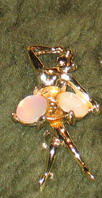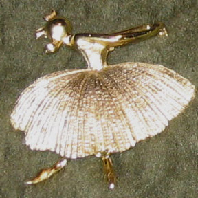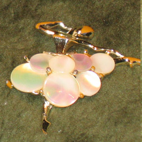 - BR - 13 This pretty ballerina has a mother of pearl disk skirt and a gold tone body.