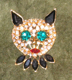 - BR- 2 - Colorful rhinestone cat with emerald green eyes