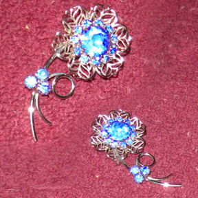 - BR - 97 - Silvertone layered floral brooch, set with the most AMAZING Bermuda Blue rhinestones!