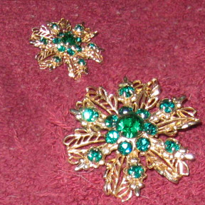 - BR - 99 Emerald rhinestones classic snowflake pin
