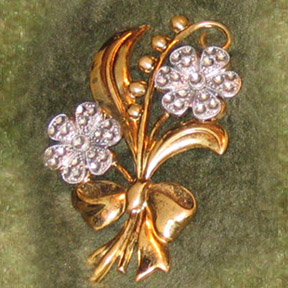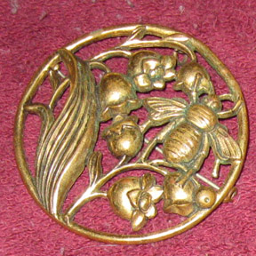 - BR - 67 Gold tone Bumble bee on a stalk of lily in the valley. Circa late 30's early '40's.