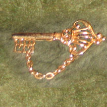 - BR - 29 - Very neat vintage brooch of a gold tone key with a suspended gold tone chain